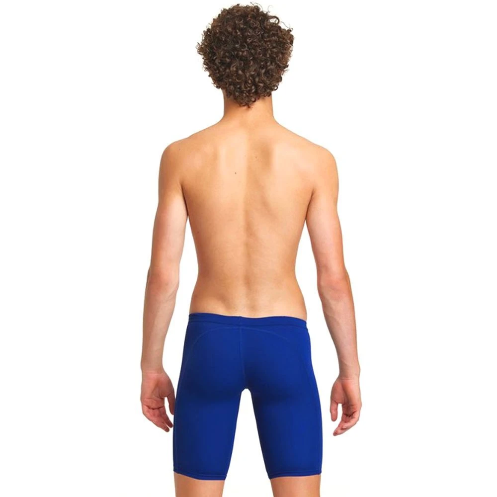 The Funky Trunks Still Ocean Boy’s Training Jammers are a super comfortable, durable and chlorine resistant swimsuit for young swimmers. It features a more relaxed design in navy blue with the Funky Trunks logo on the lower leg. They are constructed with a premium polyester fabric and will look like new even after years of use in the pool.