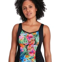 Speedo Womens Printed Contour 1Piece Shaping Swimsuit Black/Pink